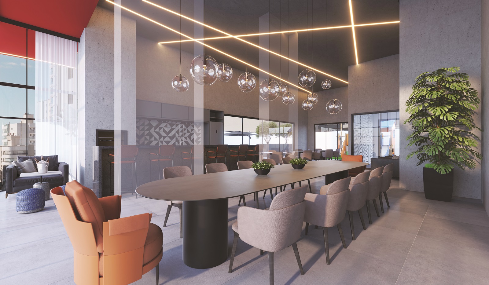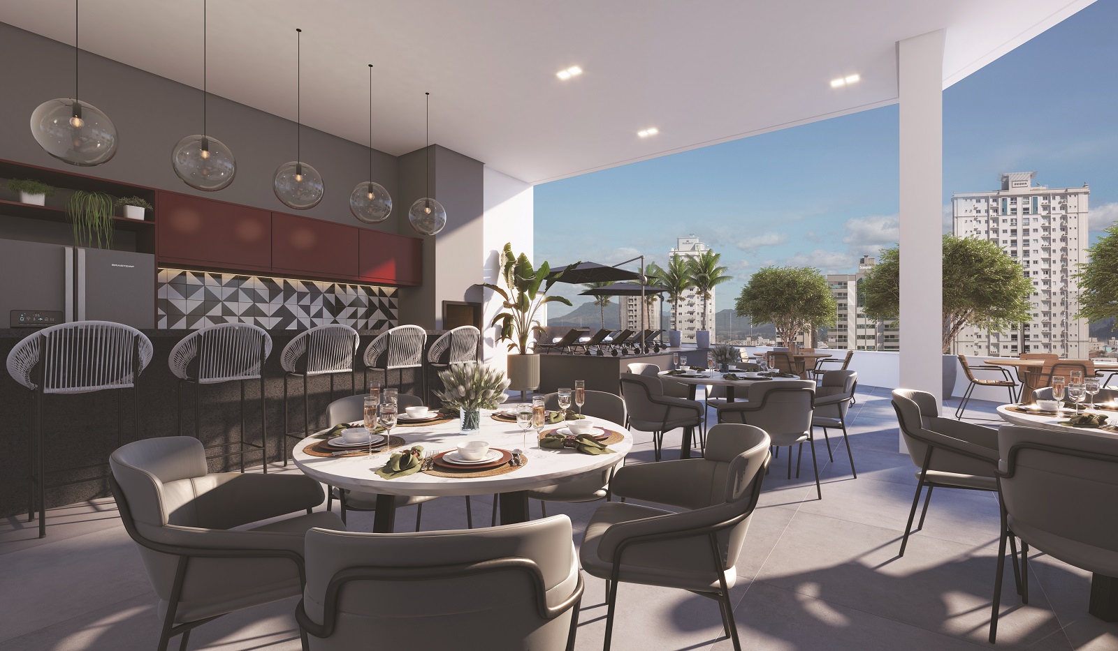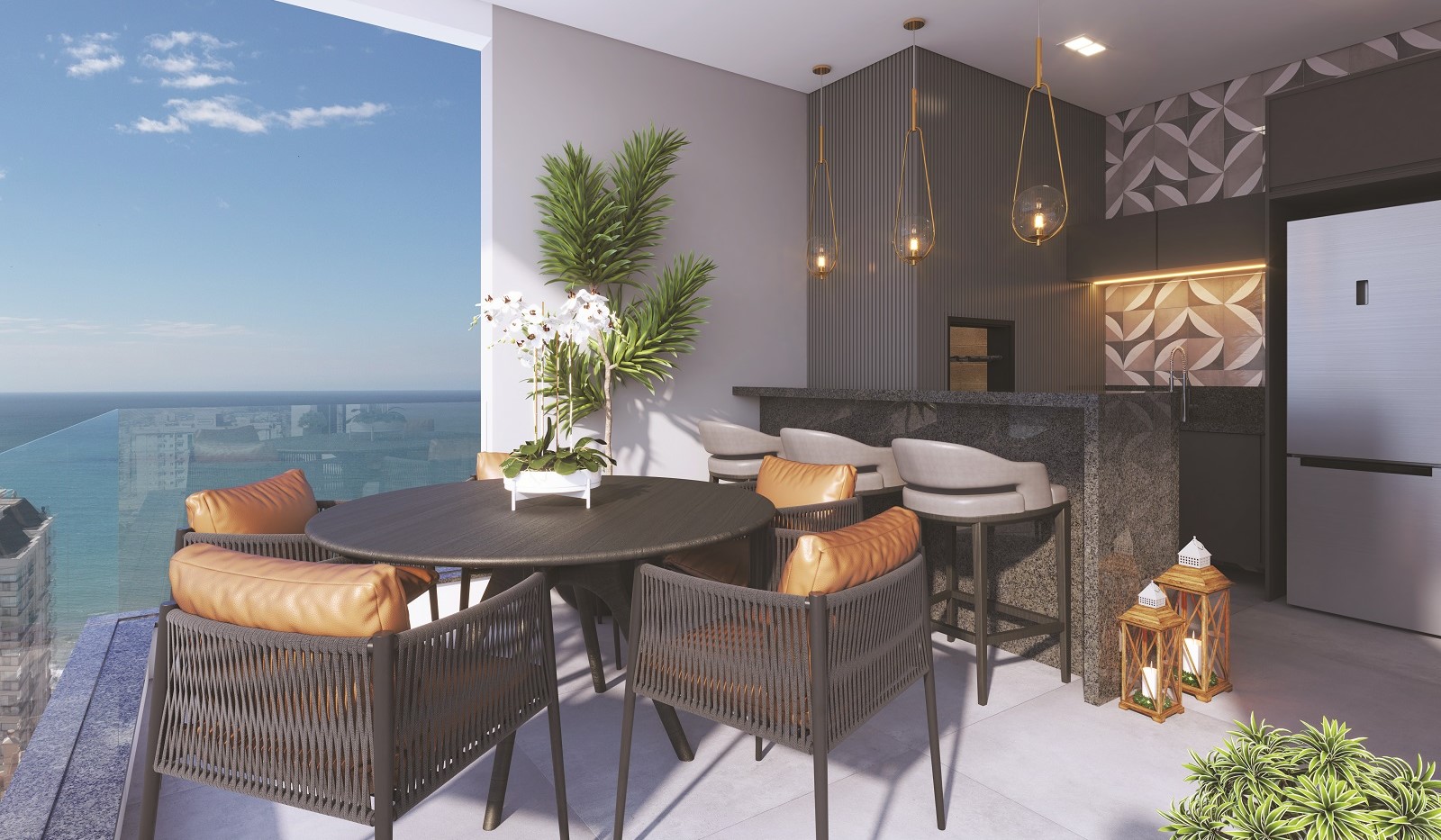 Conta com Acabamento em gesso, Ar Condicionado, Circuito Tv, Sala de Estar, Porcelanato, Living, Interfone, Cozinha, Churrasqueira, Espera para split, Gás Individual, Hidrômetro Individual, Infraestrutura para água quente, Internet, Lavabo, Sacada, Sala de jantar, Área de Serviço, Banheiro Social.