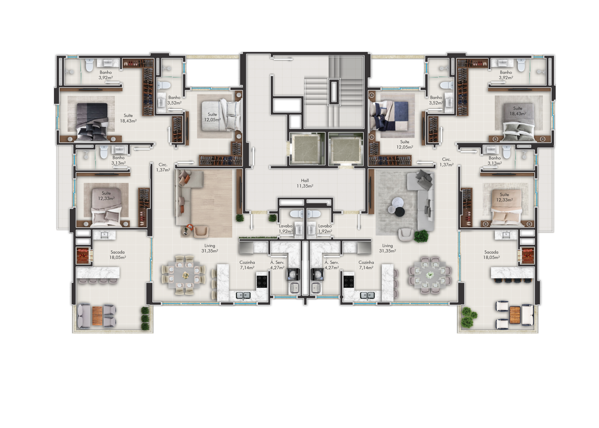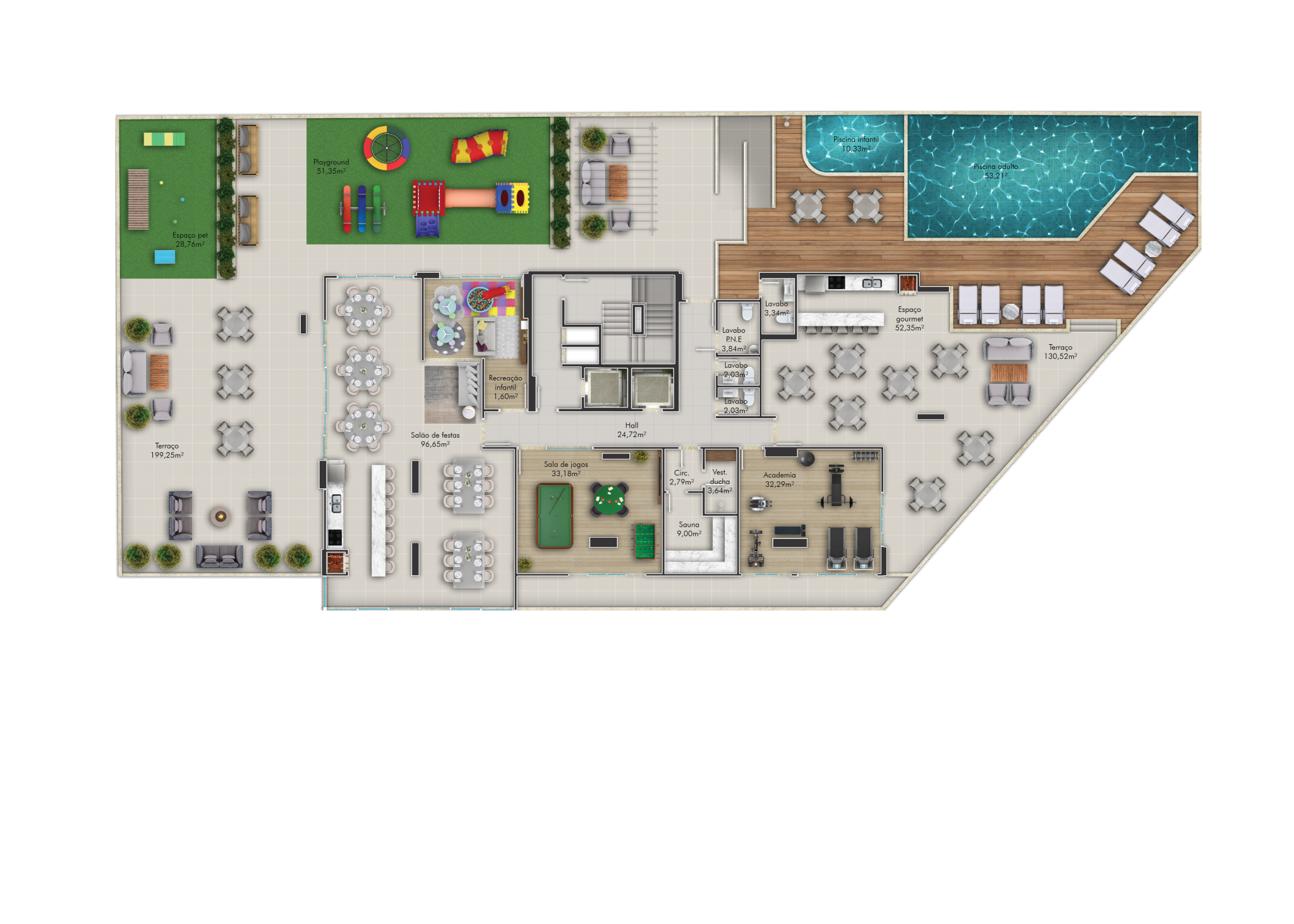 De acordo com a lei 4591/64, informamos que as imagens e ilustrações contidas neste material possuem caráter exclusivamente promocional. Os móveis, assim como alguns materiais de acabamento representados nas ilustrações e plantas, não fazem parte do contrato. O empreendimento será entregue conforme indicado no memorial descritivo, podendo haver modificações em função de projeto estrutural sem aviso prévio.