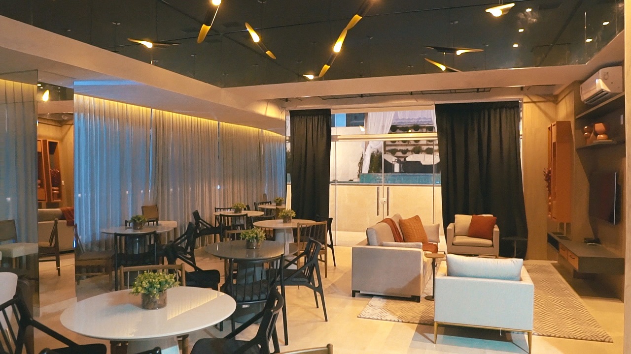 Os Apartamentos possuem 03 suites - Tipo 1 (170m²) e Tipo 2 (167m²); Infraestrutura para ar-condicionado tipo "split"; Portas maciças laqueadas; Pisos em porcelanato; Fechamentos em pele de vidro; Amplo living; Estendal 02 ou 03 Vagas de garagem.
